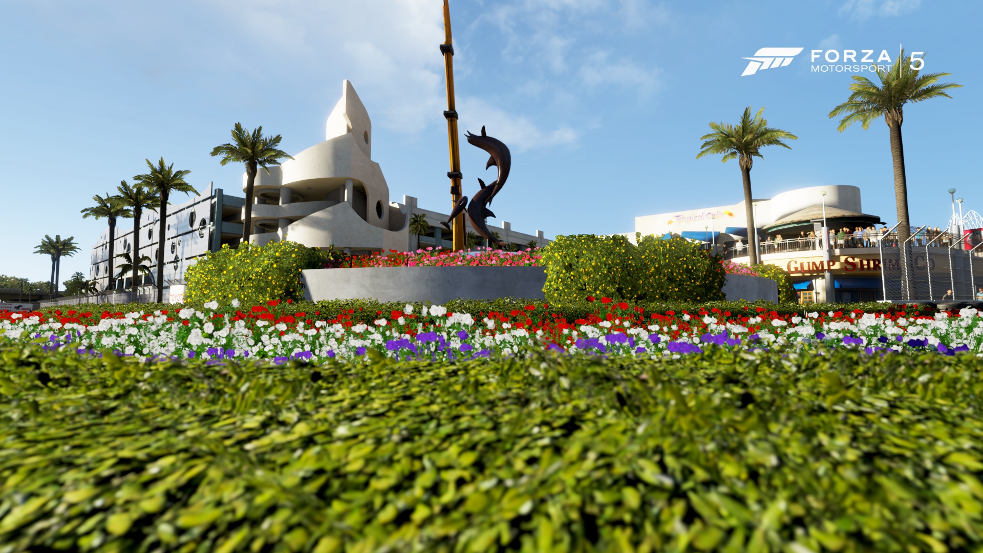 Van persze kompromisszum, hogyne lenne. A közönség jó része most is 2D elemekből áll, és ötödszörre sem kaptunk változó napszakot és időjárást, ebből a szempontból továbbra is statikusak a helyszínek. Most még ezzel kell "beérnünk", de a jövőben mindez változhat, hiszen a Forza 5 grafikus motorjára épülő Horizon 2-ben már van eső...