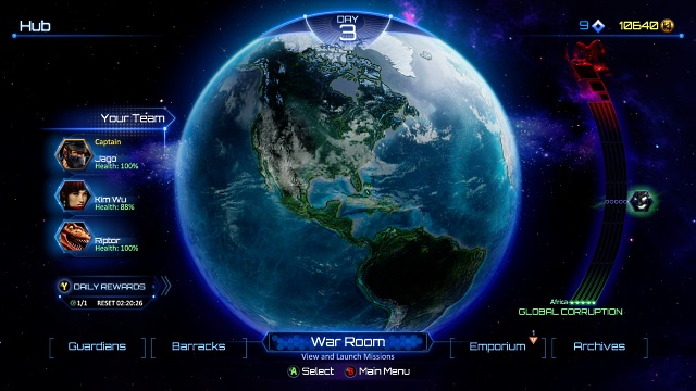 Első játék alkalmával tehát a fent említett két figurával küzdhetünk, de csapatunk hamarosan harmadik taggal is bővül, illetve játék során folyamatosan érkezhetnek új harcosok, akikre lecserélhetjük a régieket. (A második végigjátszáskor már akárkit beválogathatunk.) Háromfős különítményünk küldetéseket kell, hogy teljesítsen, ezeket egy világtérképen (War Room) választhatjuk ki. Ha mindhárom karakterünk harcolt, a forduló véget ér, és jön a következő nap. A Földön a korrupció (vagy a politikai áthallás miatt nevezzük inkább fertőzöttségnek) minden egyes nappal nő az öt földrészen. Ha az ötből háromnál eléri a maximumot, eljön maga Gargos, és akkor vagy agyonverjük, vagy vége a világnak.