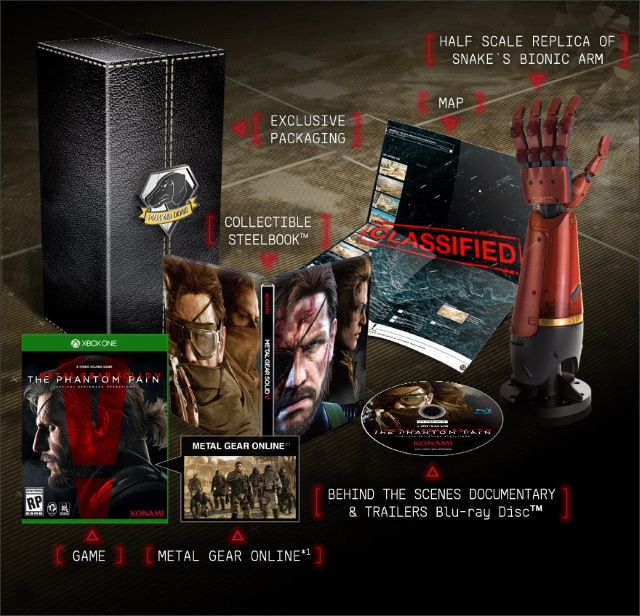 A Konami részletes listákkal és képekkel együtt jelentette be, milyen speciális kiadásokat kap a Metal Gear Solid V: The Phantom Pain. Kétféle csomagban is megvásárolható lesz "Hideo Kojima utolsó játéka", Xbox One-ra és Xbox 360-ra is.